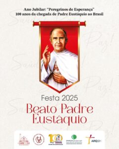 Nesta quarta-feira, 20 de agosto, o Santuário Arquidiocesano da Saúde e da Paz celebra a abertura da oração da Novena em honra ao beato padre Eustáquio, seguida pela Missa de envio dos voluntários da Festa de 2025 presidida por dom Nivaldo dos Santos, às 19h. No sábado, 30 de agosto, dia dedicado ao beato padre Eustáquio, as comunidades de fé, visitantes e peregrinos celebram o querido beato, com Missas às 5h, 7h, 9h, 11h, 13h, 15h, 17h e 19h.