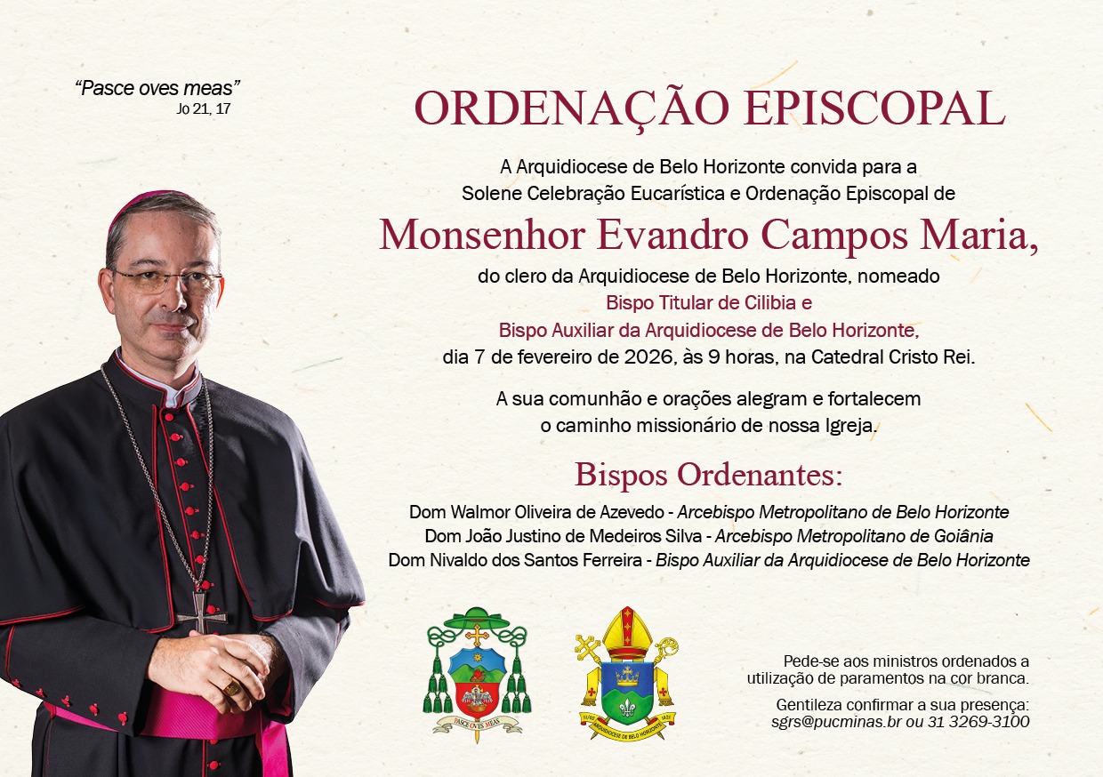 A ordenação episcopal do monsenhor Evandro Campos Maria será celebrada no dia 7 de fevereiro, na Catedral Cristo Rei, às 9h. Os bispos ordenantes serão: dom Walmor Oliveira de Azevedo, arcebispo metropolitano de Belo Horizonte, dom João Justino de Medeiros Silva, arcebispo metropolitano de Goiânia e primeiro vice-presidente da CNBB, e dom Nivaldo dos Santos Ferreira, bispo auxiliar da Arquidiocese de Belo Horizonte.