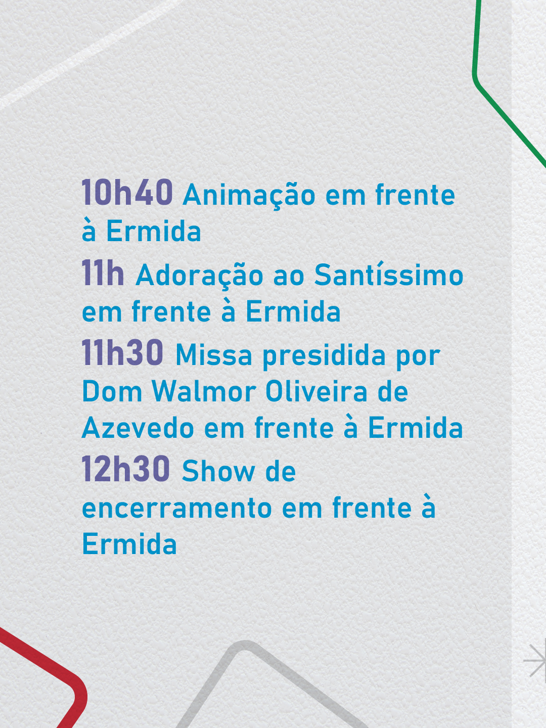 O tema “Com a Mãe da Piedade, sendo jovens da Esperança” inspira o encontro dos peregrinos. A peregrinação, que se inicia com a sua subida em direção à Ermida da Padroeira –  ponto mais alto da Serra da Piedade –  será marcada por momentos de animação. Após acolhida e atendimento de confissão, os jovens são convidados para a “Didaquês da Esperança” – importantes reflexões à luz da temática do Ano Santo 2025, além da Adoração ao Santíssimo. Logo depois, as juventudes se unem para Celebração Eucarística, às 11h30, na Praça Cardeal Mota, em frente à menor Basílica do mundo. A Santa Missa será presidida pelo nosso arcebispo dom Walmor Oliveira de Azevedo.