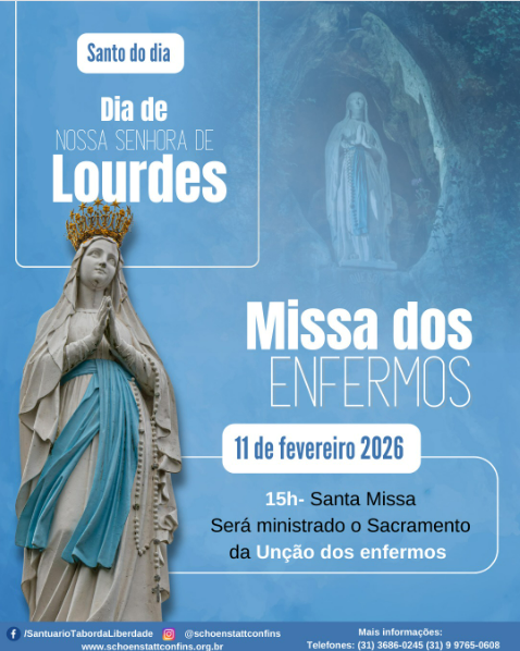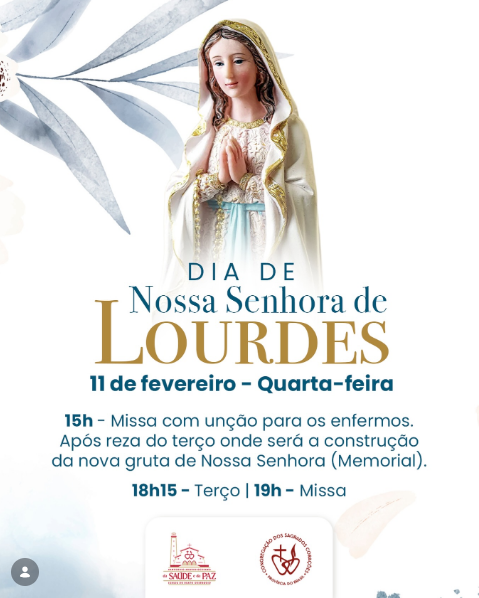 Dia 11 de fevereiro – Quarta-feira – Dia da Padroeira da Paróquia e do Município e Dia Mundial do Enfermo (105 anos da Arquidiocese de BH)