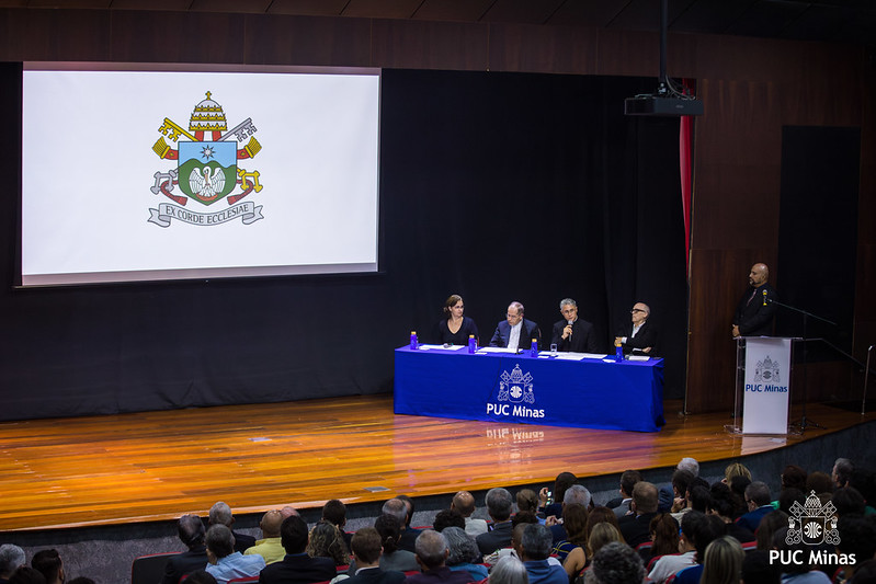 A PUC Minas apresentou à comunidade universitária o seu novo brasão institucional. Dom Walmor Oliveira de Azevedo, arcebispo metropolitano de Belo Horizonte e grão-chanceler da Universidade, presidiu a sessão solene realizada no Teatro São João Paulo II, Campus Coração Eucarístico.