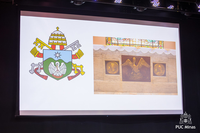 Na oportunidade, o Reitor da PUC Minas, Prof. Dr. padre Luís Henrique Eloy e Silva apresentou o novo brasão, explicou as suas características e o significado dos elementos que o compõem: a tiara e as chaves, os escudos, o pelicano e o listel. Clique aqui e saiba mais!?