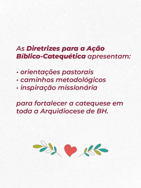 Nesta edição, o documento traz especial dedicatória aos catequistas da Arquidiocese de Belo Horizonte: