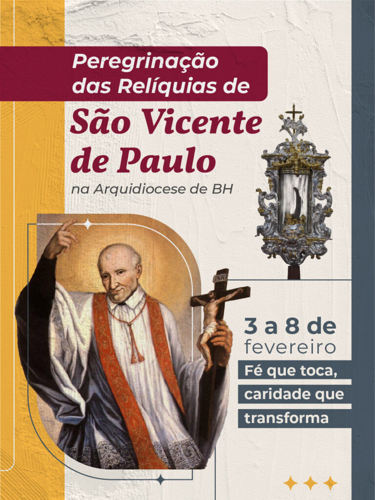 Paróquias e Santuários, de Belo Horizonte e da região metropolitana, vão receber as relíquias de São Vicente de Paulo, em exposição itinerante, de 3 a 8 de março: uma carta manuscrita em 1630 por São Vicente de Paulo, um pedaço de sua túnica e um fragmento da costela do Santo integram a exposição itinerante, que contempla ainda uma réplica do corpo de São Vicente de Paulo, encontrado incorrupto em 1712 – 52 anos de pois de sua morte, em 1660. Após a exumação, ocorrida no processo de beatificação do Santo, o corpo sofreu o processo de decomposição natural, mas a preservação de seus restos mortais, por tantos anos, é interpretada pela Igreja como um dos sinais de sua santidade.