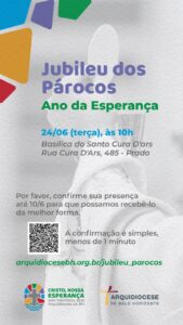 ➡️ Sacerdote, para melhor organizamos esse fraterno encontro, confirme a sua presença até o dia 10 de junho. Clique aqui: https://arquidiocesebh.org.br/jubileu_parocos