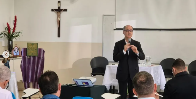 Após momentos de agradecimentos, dom José Otacio, junto com o vigário episcopal da Região, padre Junior Vasconcelos, deu continuidade à Assembleia. Os sacerdotes refletiram sobre o Diretório Pastoral Litúrgico- Sacramental, apresentado pelo pastoralista para Liturgia e Formação, Daniel Reis. Após a reflexão, grupos se reuniram para dialogar sobre aspectos importantes do Diretório.