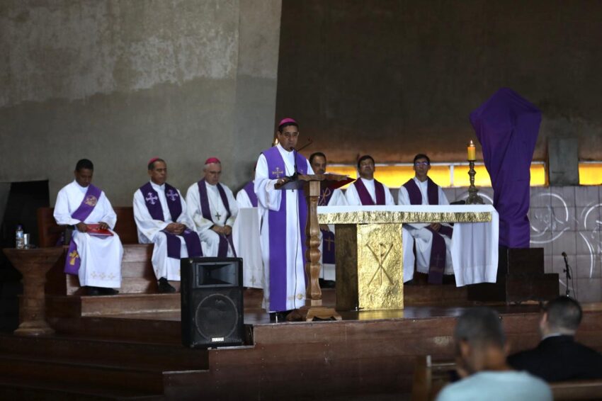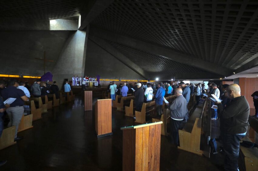 Em um momento de unidade e partilha, bispos, padres, diáconos e religiosos da Arquidiocese de Belo Horizonte se reuniram na manhã desta sexta-feira, 11 de abril, no Santuário Basílica Nossa Senhora da Piedade – Padroeira de Minas Gerais para uma vivência fraterna: a Celebração Penitencial do Clero.