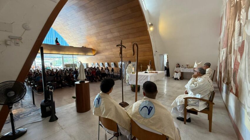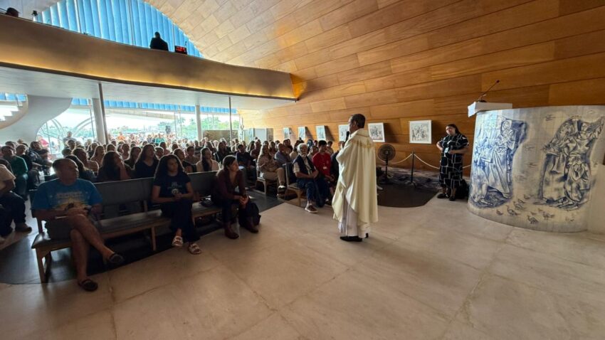 O Santuário Arquidiocesano São Francisco reuniu muitos peregrinos para a Festa do Padroeiro, nesse sábado, 4 de outubro, na orla da Lagoa da Pampulha. A intensa programação integrou momentos de oração, atividades culturais e socioambientais. Logo pela manhã, os peregrinos acolheram a imagem de São Francisco de Assis que, em uma embarcação, foi levada pelas águas da lagoa até o Santuário. Os fiéis participaram ainda, durante a manhã, da Missa presidida pelo bispo auxiliar dom Júlio César Gomes Moreira.