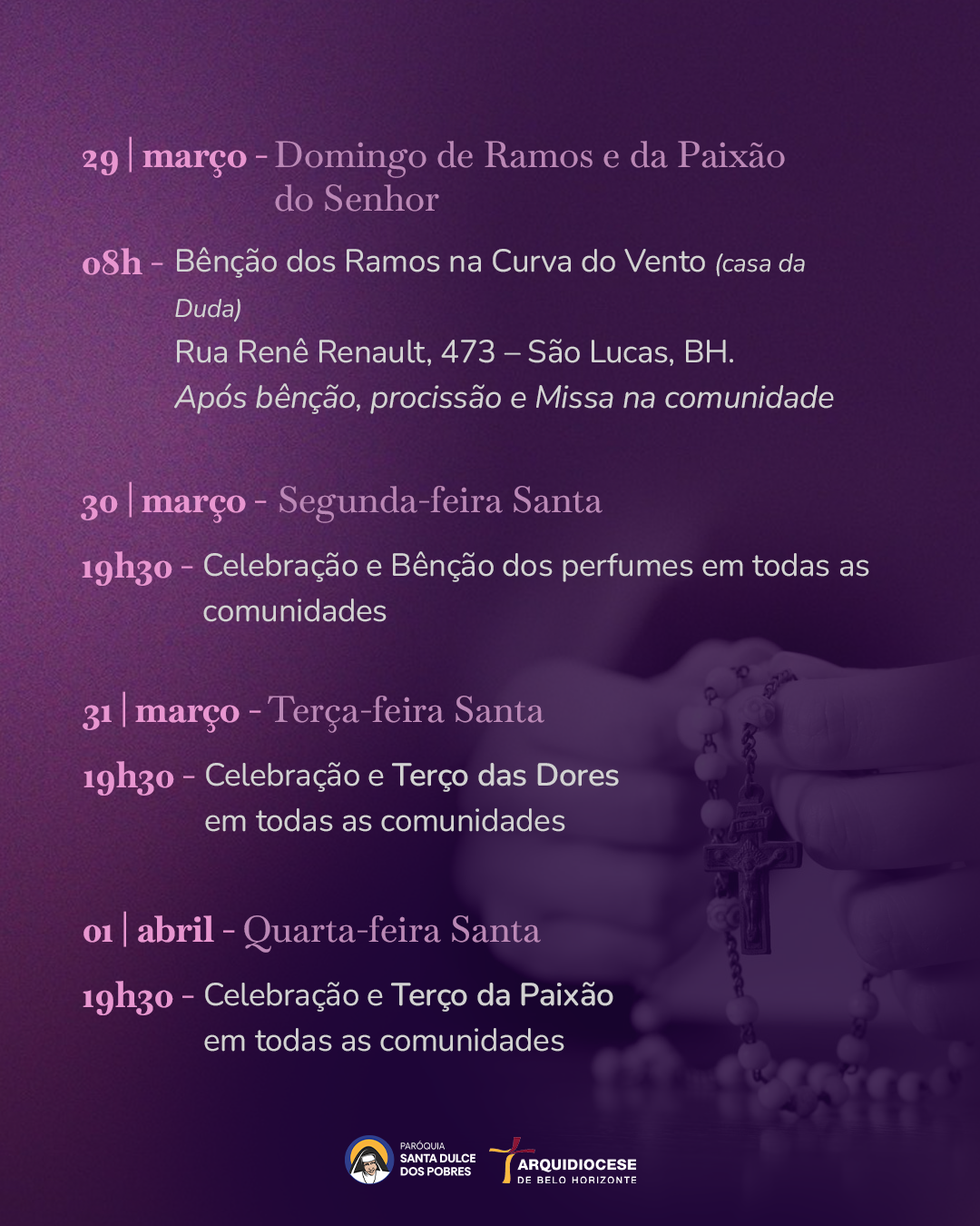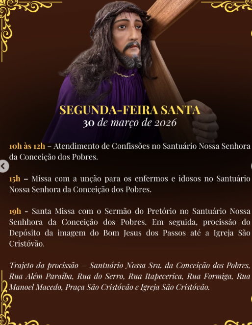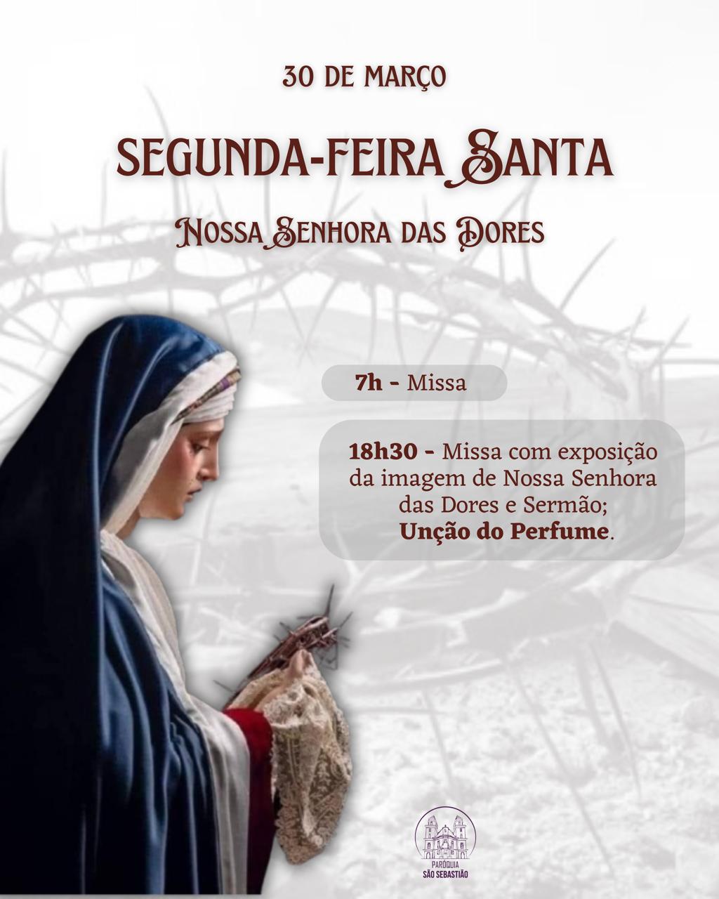 30 DE MARÇO 2026 – SEGUNDA FEIRA SANTA