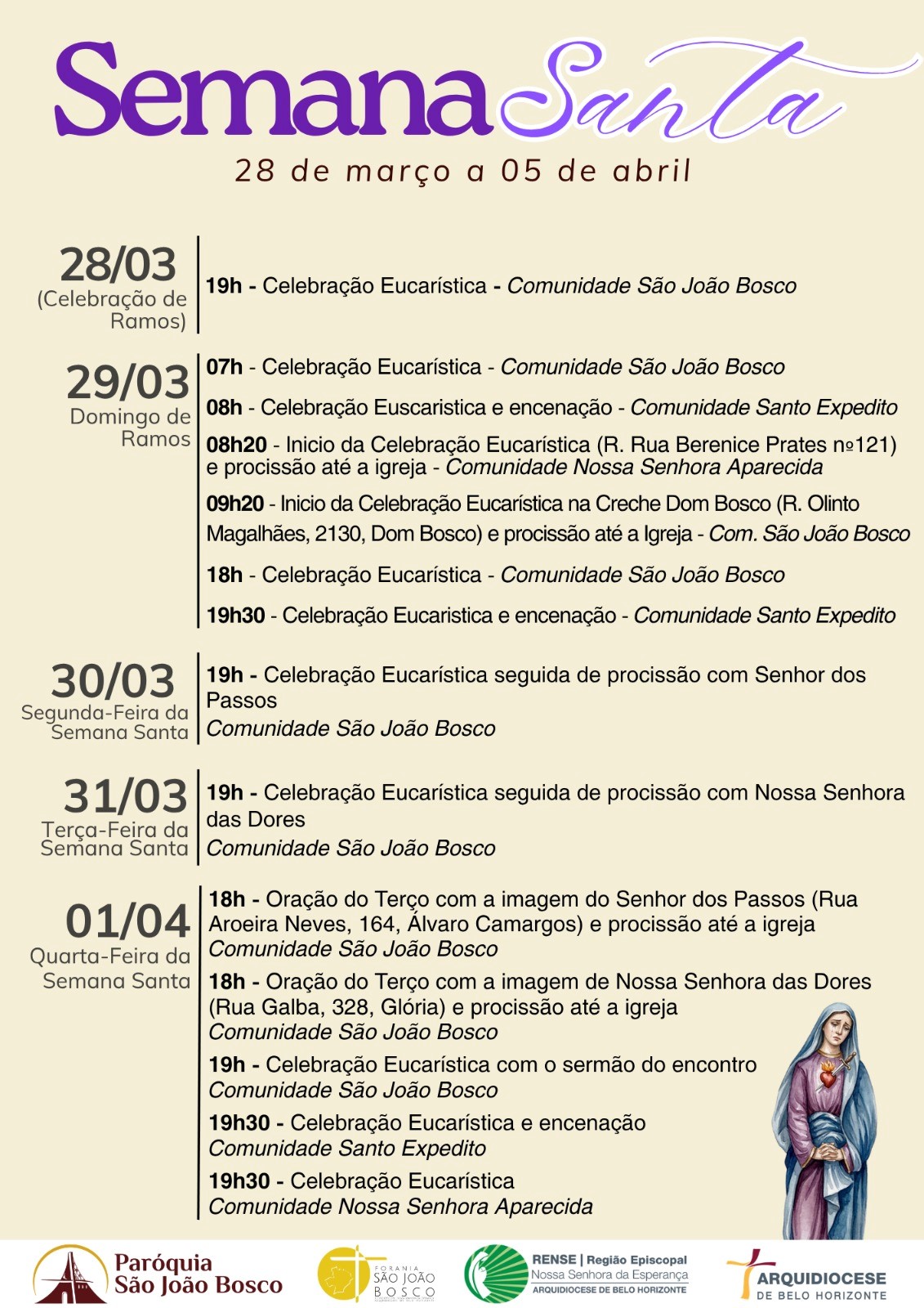 Semana Santa – 29 de março a 5 de abril 2026
