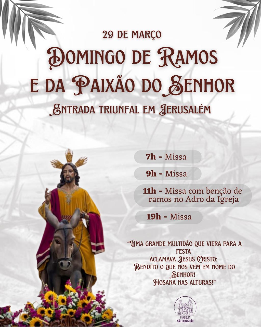 29/03/2026 DOMINGO DE RAMOS “Bendito o que vem em nome do Senhor” Mt 21,9