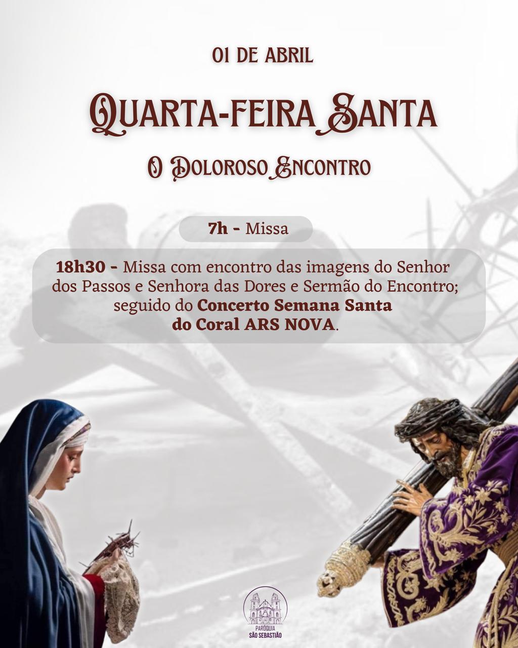 01/04/2026 QUARTA FEIRA SANTA ENCONTRO DE NOSSA SENHORA DAS DORES COM O SENHOR DOS PASSOS “Não desviei o rosto de bofetões e cusparadas” Is 50,6