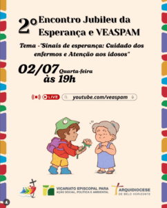 O Vicariato Episcopal para Ação Social, Política e Ambiental (Veaspam) promove uma série de formações sobre o Jubileu da Esperança, com transmissões on-line. O segundo encontro ocorre, na próxima quarta-feira, 2 de julho, às 19h. A formação especial convida os fiéis para refletirem sobre o cuidado com os enfermos e atenção aos idosos: como cultivar uma cultura do cuidado em nossas comunidades de fé?
