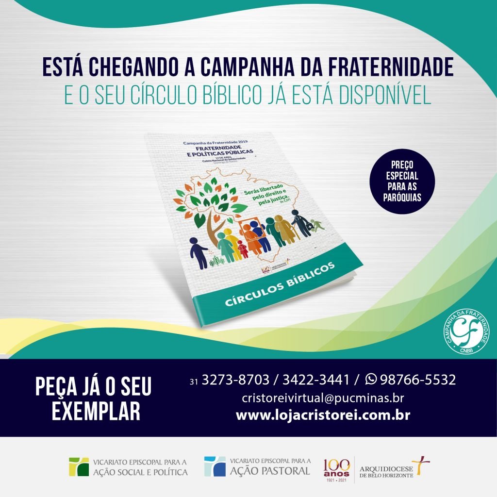 Neste mês especial, aproveite para adquirir o subsídio Círculos Bíblicos, especialmente preparado pelo Vicariato Episcopal para a Ação Pastoral da Arquidiocese de Belo Horizonte, para celebrar a Campanha da Fraternidade.