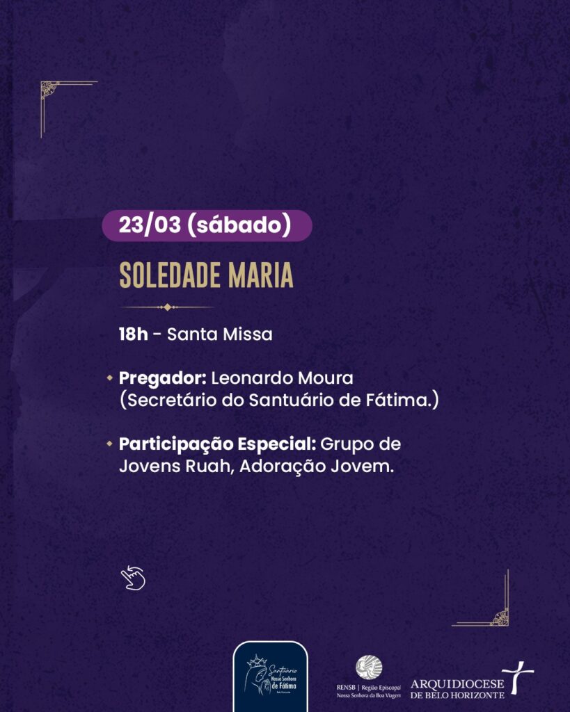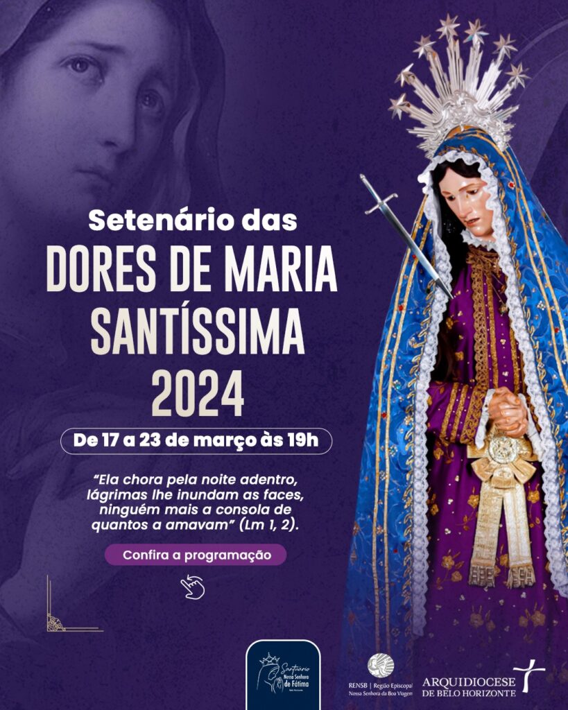 Em março, o Santuário Basílica Nossa Senhora da Piedade – Padroeira de Minas Gerais convida os fiéis e todos os visitantes para Missas diárias, devoção dos Primeiros sábados (programação especial dedicada à Mãe Piedade), oração do Terço e também para a vivência do Setenário das Dores de Maria – de 16 de março a 23 de março, na Casa da Mãe Piedade. O Setenário relembra as dores que a Mãe Maria sofreu com a paixão, morte e sepultamento de seu filho Jesus.