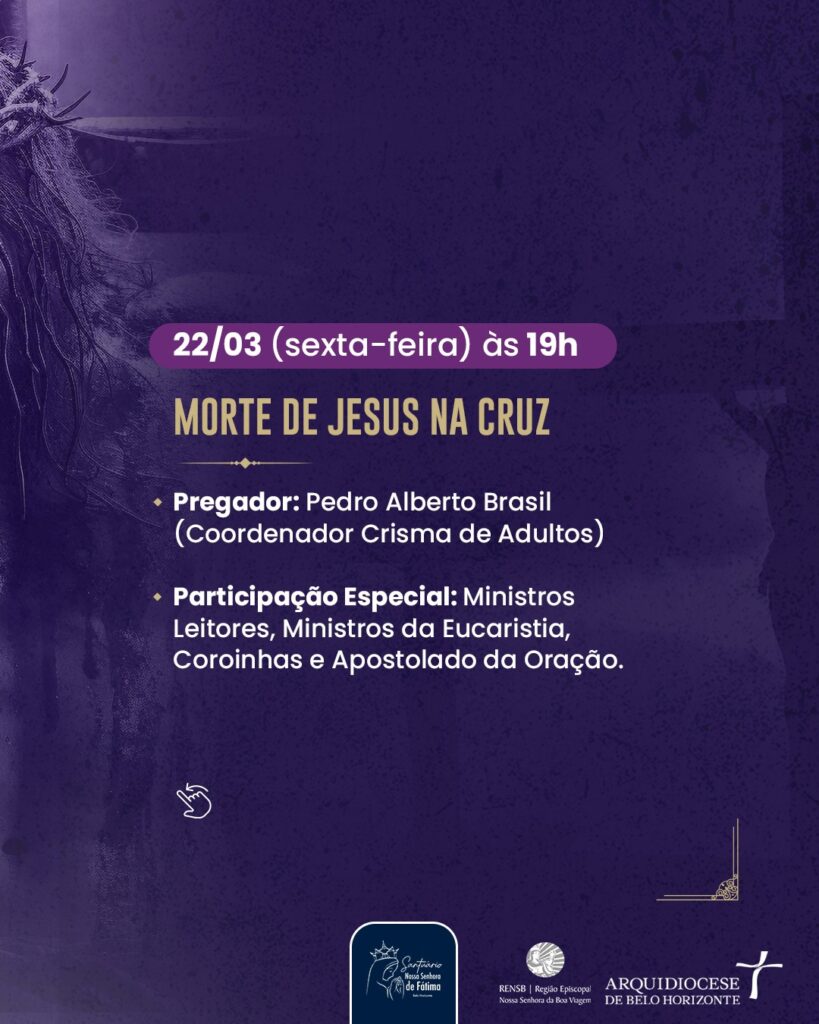 – Dia 20/03/24: Quarta-Feira da Semana das Dores –  Celebração Penitencial, às 19h.
