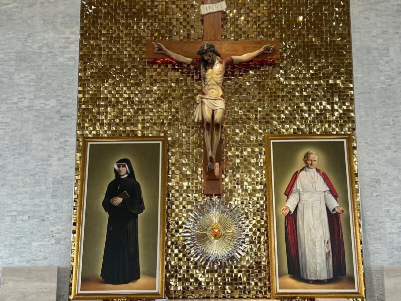 Os quadros com as imagens de São João Paulo II e de Santa Faustina já foram emoldurados e, em breve, estarão em exposição para os fiéis no Santuário Arquidiocesano Nossa Senhora da Conceição Aparecida, em Contagem.