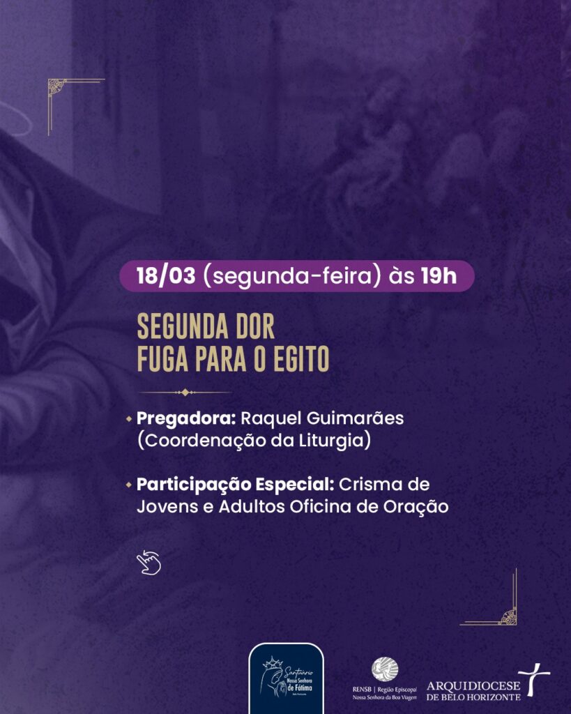– Dia 20/03/24: Quarta-Feira da Semana das Dores – Celebração Penitencial, às 19h.