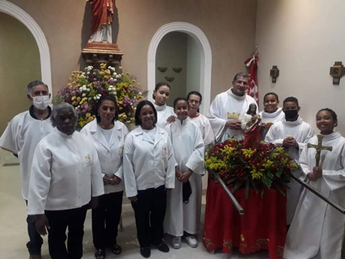 O grupo é composto por crianças e adolescentes que se dedicam ao auxílio das celebrações eucarísticas. Trabalham num revezamento de escala para ajudar o celebrante nos serviços do altar durante a missa ou celebração da Palavra. A formação para novos coroinhas acontece uma vez ao ano, para se inscrever os interessados podem procurar os coordenadores de cada comunidade.