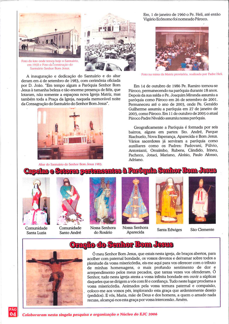 Em 01 de janeiro de 1948, Pe. Heli de Oliveira Mendes foi nomeado vigário Ecônomo e já em fevereiro de 1951 apresentou o projeto da nova matriz.