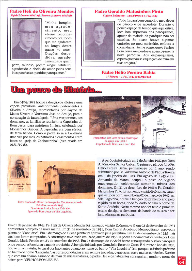Em 01 de janeiro de 1948, Pe. Heli de Oliveira Mendes foi nomeado vigário Ecônomo e já em fevereiro de 1951 apresentou o projeto da nova matriz.