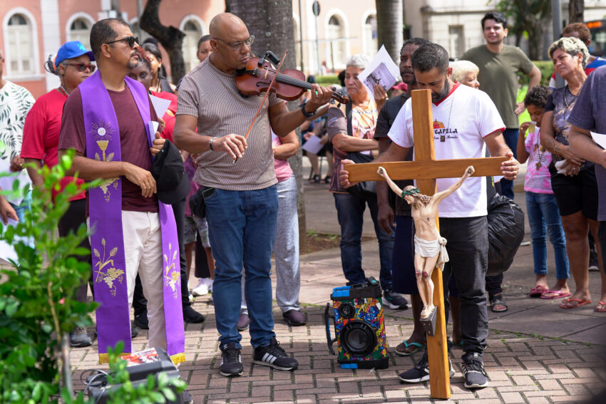 Acompanhe pelas imagens a bonita partilha de almoço que congregou nossos irmãos que vivem em situação de rua na Sexta-feira Santa, no Viaduto de Santa Tereza, na região central de Belo Horizonte. A partilha do almoço foi realizada após Via-sacra que recordou os passos da Paixão de Cristo.