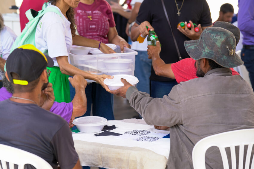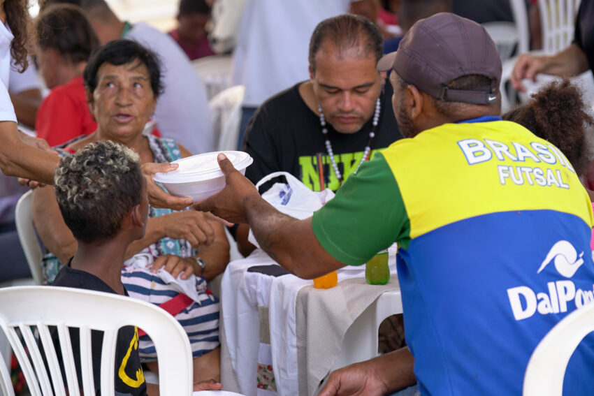 O fraterno almoço foi preparado na Catedral Cristo Rei, pela iniciativa Dai-lhes vós mesmos de comer que, às sextas-feiras, partilha mais de 300 refeições com aqueles que não conseguem ter acesso ao alimento todos os dias.
