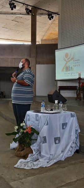 Em seguida, Dom Joel Maria dos Santos, bispo auxiliar da Arquidiocese de Belo Horizonte, conduziu a reflexão sobre a história dos Sínodos, o concílio Vaticano II. Lembrou que o caminhar junto exige de nós conversão, mudança de mentalidade, abertura a Palavra de Deus. É necessário que alguém “se abaixe” pondo-se a serviço dos irmãos ao longo do caminho. Dom Joel citou um trecho do discurso do Papa Francisco na comemoração do cinquentenário da instituição do Sínodo dos bispos: “O caminho da sinodalidade é precisamente o que Deus espera da Igreja no terceiro milênio”.