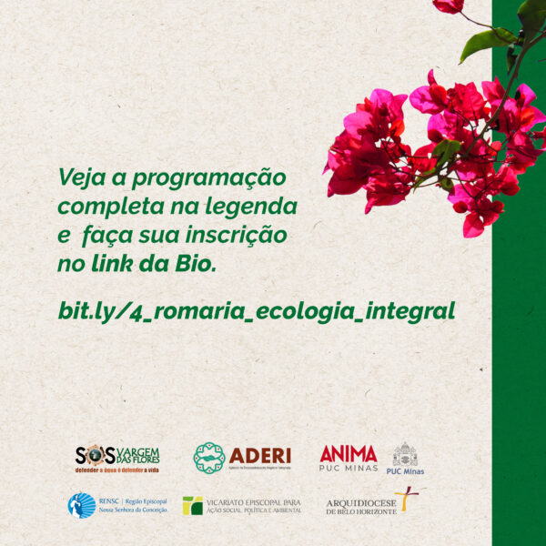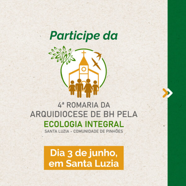 Acompanhe a programação da 4ª Romaria da Arquidiocese de Belo Horizonte pela Ecologia Integral e venha semear conosco o Evangelho, compartilhando o bem viver e o cuidado com a criação!