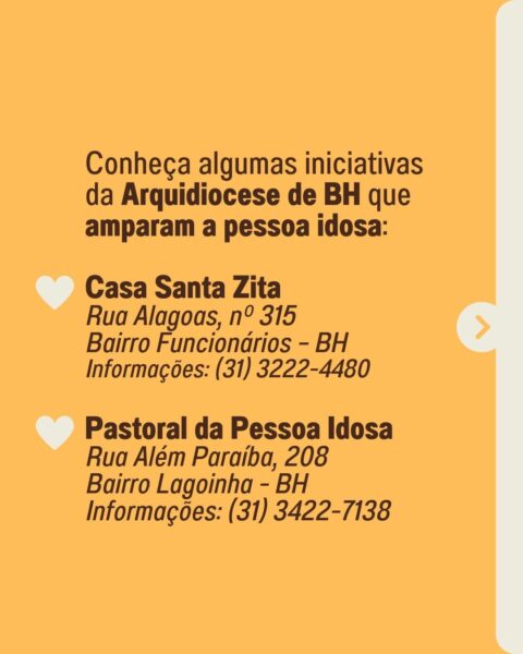 Conheça algumas iniciativas da Arquidiocese de BH que amparam a pessoa idosa: