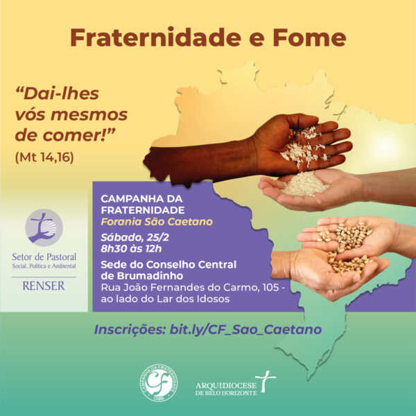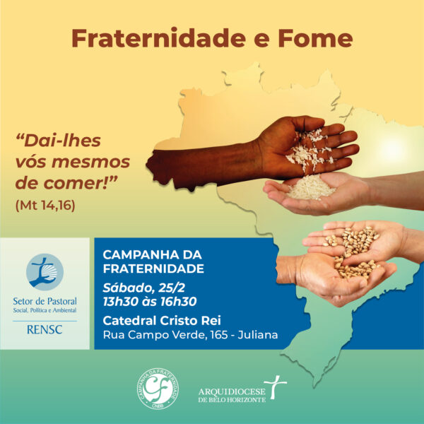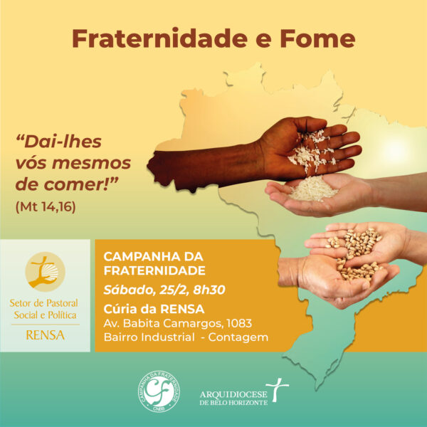 A Campanha da Fraternidade 2023 iniciou em todo o país no dia 22 de fevereiro. Com o tema “Fraternidade e fome”, e o lema “Dai-lhes vós mesmos de comer” (Mt 14,16), a Campanha convida as comunidades de fé a vivenciarem e a refletirem esse tema na perspectiva social, amparando nossos irmãos e irmãs mais pobres por meio de gestos de solidariedade.