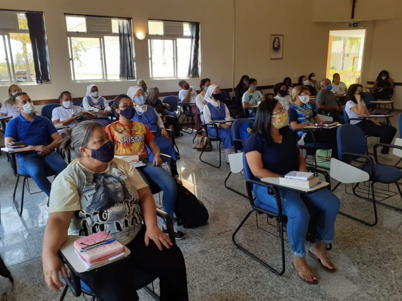 Os catequistas refletiram sobre o seguinte tema: Coordenadores de catequese chamados e enviados como Cristo.
