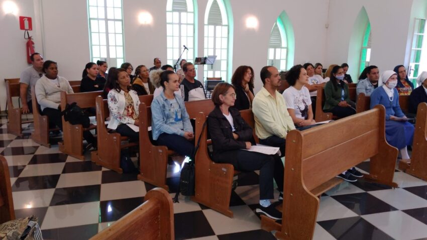 A Região Episcopal Nossa Senhora da Conceição (Rensc) promoveu no domingo, 15 de maio, de 8h às 16h, o retiro com os coordenadores da Iniciação à Vida Cristã, no Recanto Coqueiro D’Água, em Santa Luzia, organizado pelo Colegiado Catequético. O retiro foi orientado pelo assessor Aldeman Neto, seminarista Jesuíta, que trabalhou o tema “Todos na Sinagoga estavam com os olhos fixos Nele”e contou com a participação de 50 coordenadores das Foranias Nossa Senhora da Piedade, Nossa Senhora da Saúde, Nossa Senhora das Neves, Santa Luzia e Santo Antônio de Venda Nova. Padre Roberto Rubens da Silva (assessor eclesiástico da catequese na RENSC) fez abertura do retiro acolhendo a todos com palavras de motivação e entusiasmo.