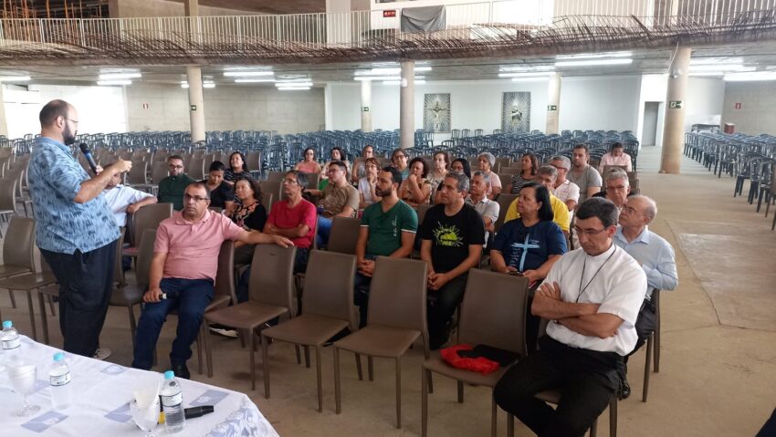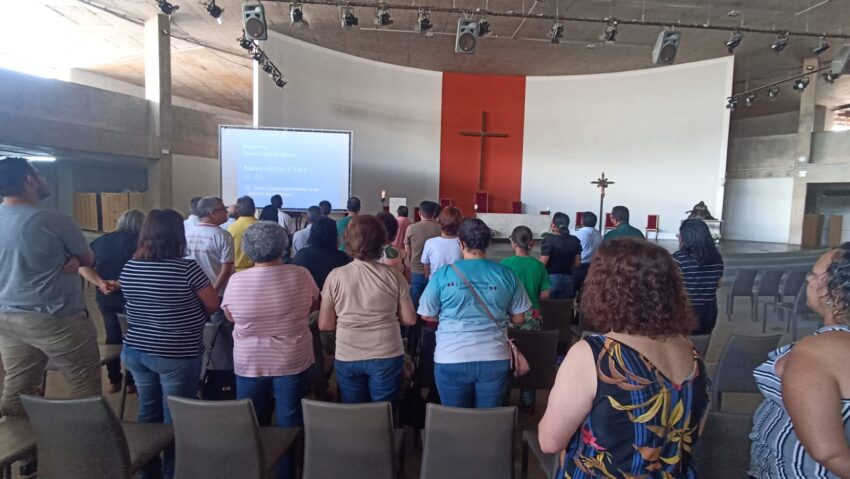 Nesta manhã na Região Episcopal Nossa Senhora da Conceição Dom Júlio César Gomes Moreira, bispo auxiliar da Arquidiocese de Belo Horizonte e referencial para Região Episcopal Nossa Senhora da Conceição e Pe Antônio Moacir, presidem a reunião do Conselho Pastoral Ampliado com a presença de conselheiros e representantes dos colegiados pastorais. Pe Filipe Gouvêa, vigário episcopal para Ação Pastoral conduz a reflexão sobre Sínodo, apresentação das sínteses da cartilha Comunhão, participação e Missão – Por uma Igreja Sinodal enviada pelas Foranias.