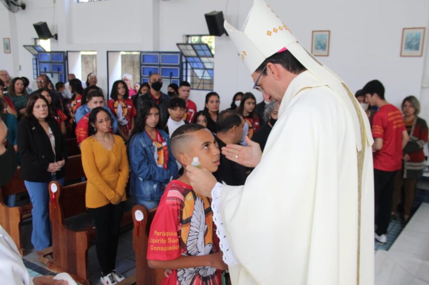 No domingo, dia 22 de maio, 9h, Dom Júlio César, bispo auxiliar da Arquidiocese de Belo Horizonte e referencial para Região Episcopal Nossa Senhora da Conceição presidiu missa e conferiu o sacramento da crisma para os jovens da Paróquia Espírito Santo Consolador em Vespasiano na Forania Nossa Senhora de Lourdes. Pe Robson Costa Mendes, pároco concelebrou com Dom Júlio. fotos: Ana Manoela