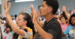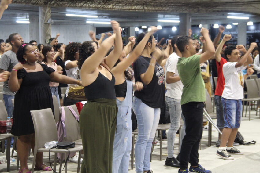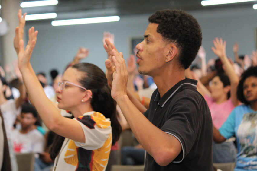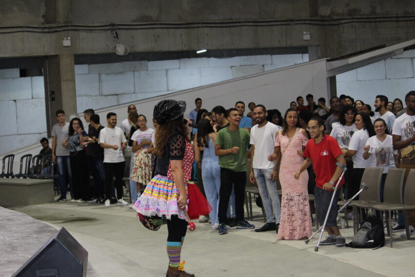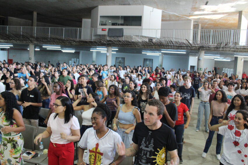 Com muita animação os mais de 900 jovens presentes vivenciaram juntos momentos de oração, louvor, partilha, brincadeiras e convivência.
