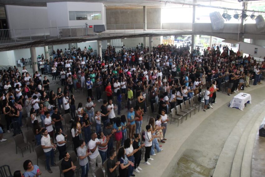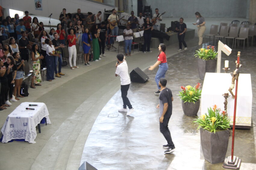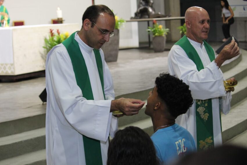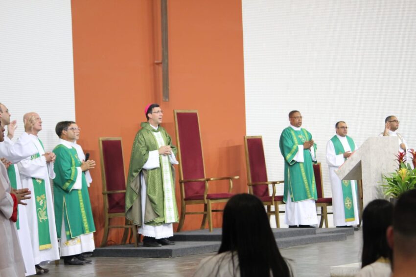 Dom Júlio César na homília deixou um recadinho: “Jovens: leiam, estudem e cresçam na Palavra de Deus dentro de si para transbordar sinais da Igreja de Cristo no mundo. A fé nos reúne. Não podemos caminhar sozinhos. Não podemos viver a fé sozinhos. Juntos como Igreja. Para ajudar, para apoiar, para atuar. E sermos imagem de Cristo no mundo.”