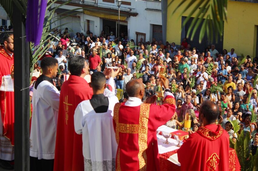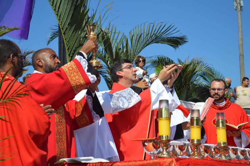 Neste Domingo de Ramos, dia 02 de abril, Dom Júlio César Gomes Moreira, bispo auxiliar da Arquidiocese de Belo Horizonte e referencial para Região Episcopal Nossa Senhora da Conceição presidiu a celebração do Domingo de Ramos e da Paixão do Senhor no Santuário Arquidiocesano de Santa Luzia. A celebração foi concelebrada pelos Padres Felipe Lemos e Matozinhos Oliveira e o Diácono Remo Alves. A celebração iniciou no adro da Igreja de Nosso Senhor do Bonfim com a Benção dos Ramos e em seguida, todos seguiram em procissão até o adro do Santuário onde continuaram os ritos da Missa.