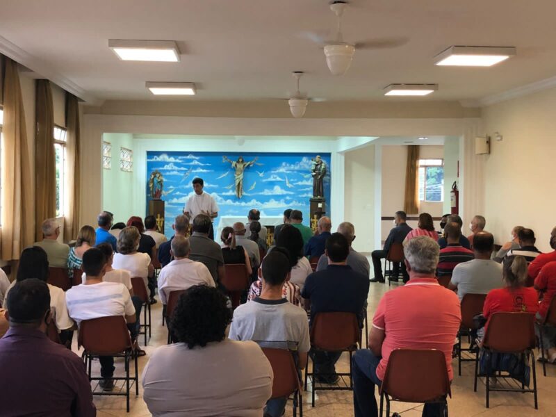 Na tarde de sábado, dia 09 de abril, no Centro Pastoral da Paróquia Santo Antônio de Venda Nova, Dom Júlio César, bispo auxiliar da Arquidiocese de Belo Horizonte e referencial para a Rensc conduziu o primeiro encontro presencial com os Diáconos permanentes e esposas, vocacionados da Escola Diaconal São Lourenço e esposas. O objetivo do encontro foi rever o trabalho dos diáconos nas paróquias da Rensc, especialmente nas Vilas e Favelas e nas diversas pastorais. Na Região Episcopal Nossa Senhora da Conceição os diáconos estão distribuídos em 10 Diaconias Forâneas. Todo último sábado do mês os diáconos e vocacionados se reúnem para momentos de formação e partilhar a palavra. Nos encontros também são tratados os assuntos das diaconias ambientais, as escolas, os hospitais, cemitérios, prisões e cárcere presentes nas Forania.