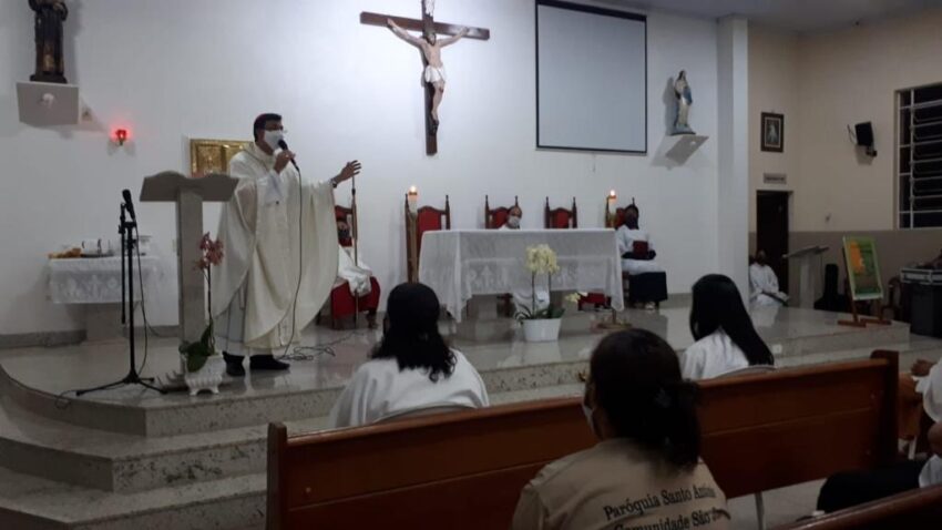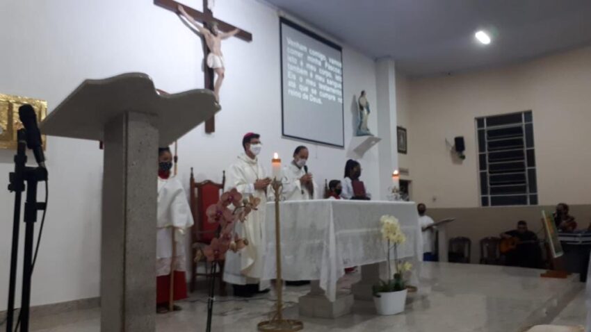 Dom Júlio César Gomes Moreira, bispo auxiliar da Arquidiocese de Belo Horizonte e referencial para a Rensc abriu solenemente o primeiro dia do Tríduo Pascal, na Paróquia Santo Antônio em Lagoa de Santo Antônio em Pedro Leopoldo. A celebração foi concelebrada pelo Pe Cláudio José da Silva. Quinta-feira santa, recorda a instituição da Eucaristia e do sacerdócio ministerial e o mandamento novo que Jesus deixou: “Eu vos dou um novo mandamento, que vos ameis uns aos outros assim como Eu vos amei.”
