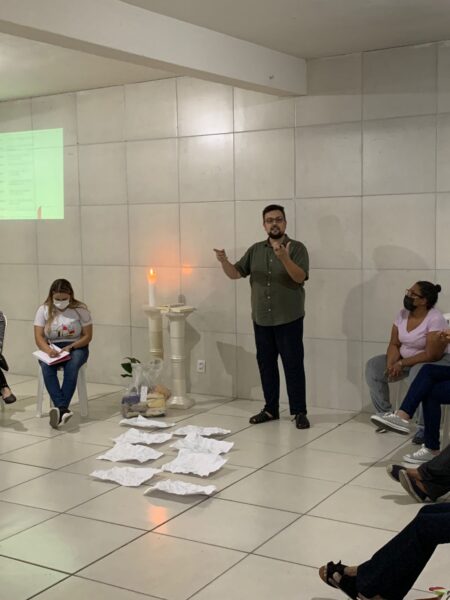 Os catequistas da Forania São Paulo Apóstolo também participaram de Formação no último sábado, dia 25 de junho. Eles contaram com a presença do sociólogo e educador social, Eduardo Brasileiro membro da Articulação Brasileira pela Economia de Francisco e Clara (APEF), que apresentou para eles o que é a Economia de Francisco e Clara.