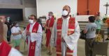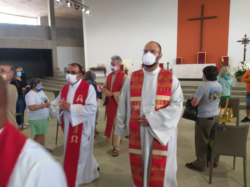 Dom Júlio César presidiu celebração na Catedral Cristo Rei. Ao final da celebração a Forania São José Operário entregou para a Forania Nossa Senhora da Paz a imagem da Nossa Senhora da Piedade – ícone do centenário da Arquidiocese de Belo Horizonte. Presentes os padres: Antônio Moacir, vigário episcopal da Rensc, Filipe Gouvêa, vigário forâneo da Forania São José Operário, Roberto Rubens, vigário forâneo da Forania Nossa Senhora da Paz, Bráulio Tibúrcio , pároco da Paróquia Imaculado Coração de Maria, Pe Messias, pároco da Paróquia São Domingos. Em comemoração ao centenário da Arquidiocese de Belo Horizonte o ícone está peregrinando pelas foranias e paróquias da Região Episcopal Nossa Senhora da Conceição.