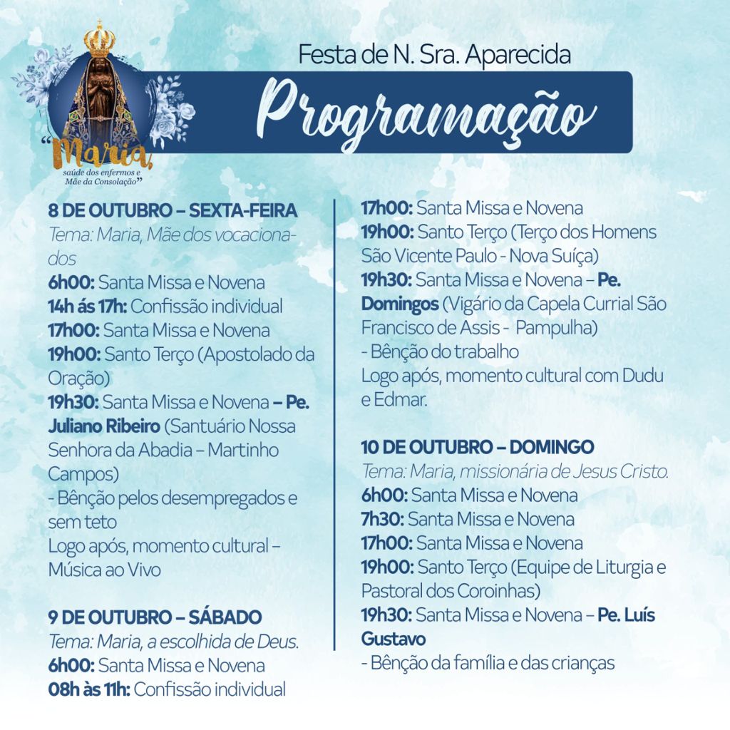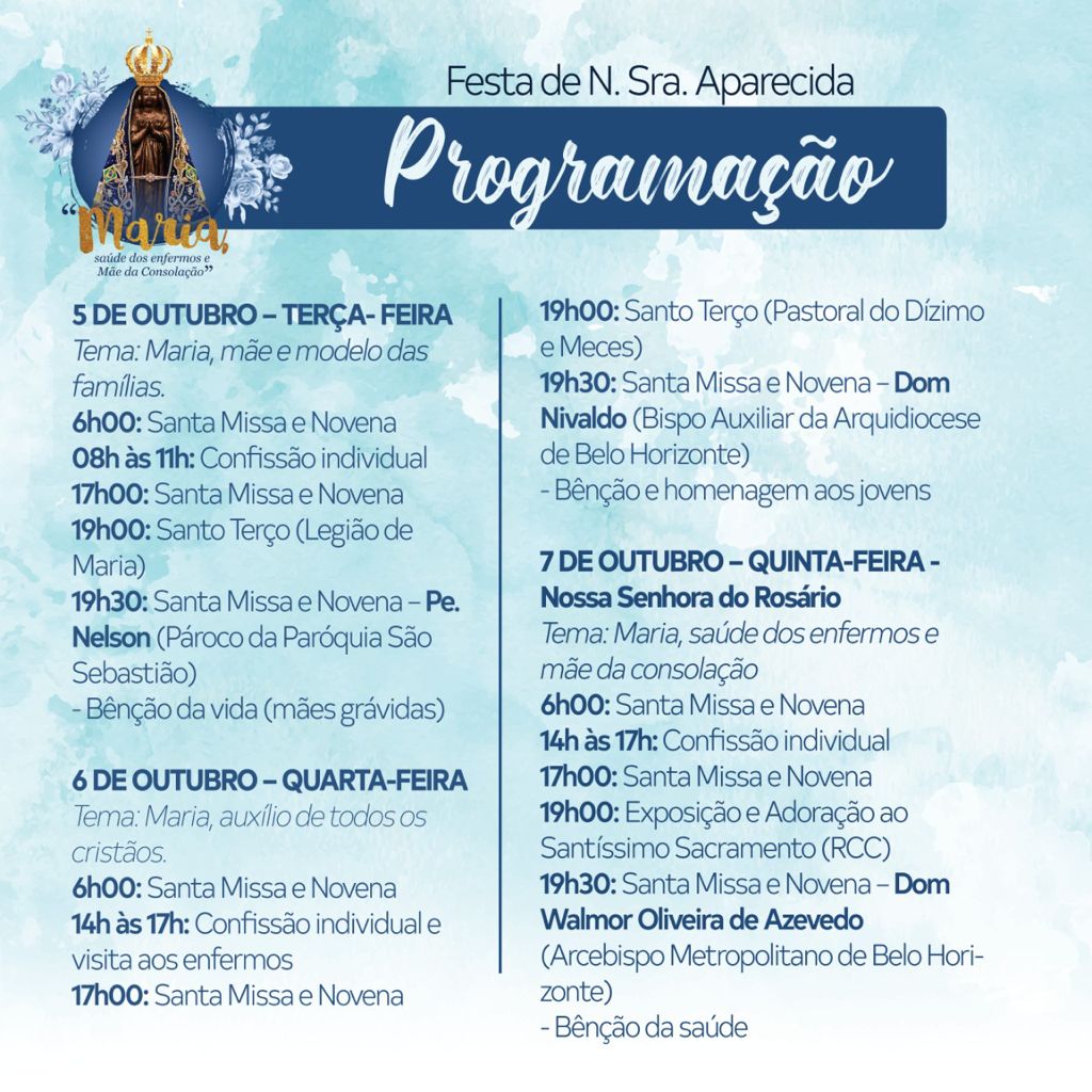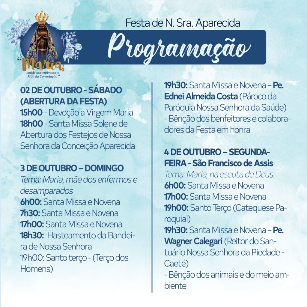 Festa de N. Sra. Aparecida - Confira ProgramaçãoOuça o conteúdo 0.5x 1.0x 1.5x 2.0x Noticias 29/09/2021