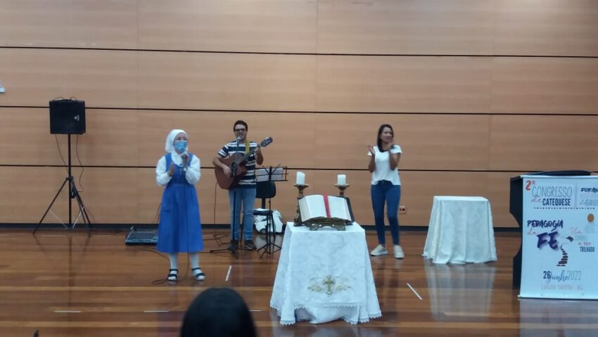 Em clima de muito entusiasmo o Colegiado de Catequese da Forania Nossa Senhora da Saúde promoveu o II Congresso de Catequese realizado na Escola Municipal Dr. Lund, em Lagoa Santa. O tema escolhido foi a “Pedagogia da fé, um caminho a ser trilhado”, assessorado pelo Padre Roberto Rubens, assessor eclesiástico da catequese na Região Episcopal Nossa Senhora da Conceição. Para os 182 catequistas presentes foram oferecidas 09 oficinas: 1-Catequese de Iniciação à Vida cristã / catequese e liturgia – Assessor: Irmã Maria da Redenção, CNSB. 2-Catequese e família – Assessor: padre Felipe Gouveia 3-Catequese e cultura digital – Assessor: Irmão Fabrício 4- Catequese e pessoas com Deficiência – Assessor: Margareth 5-Catequese e Sagrada Escritura- Irmã Ana Maria 6-Catequese e linguagem: Ana Angelica 7-Catequese e Cristologia – Assessor: Irmã Eliene 8-Catequese na realidade juvenil – Assessor: João Melo9-Identidade e vocação do catequista -Assessor: Junior. Encerrando o belíssimo II Congresso, Dom Júlio presidiu celebração, concelebrada pelo Pe Nelson, Vigário Forâneo da Forania Nossa Senhora da Saúdee pároco da Paróquia São Sebastião – Várzea – Lagoa Santa e Padre Luís Gustavo, pároco da Paróquia São Paulo Missionário, Lagoa Santa. Colaboração: Irmã Sofia, CNSB – Colegiado de catequese Rensc