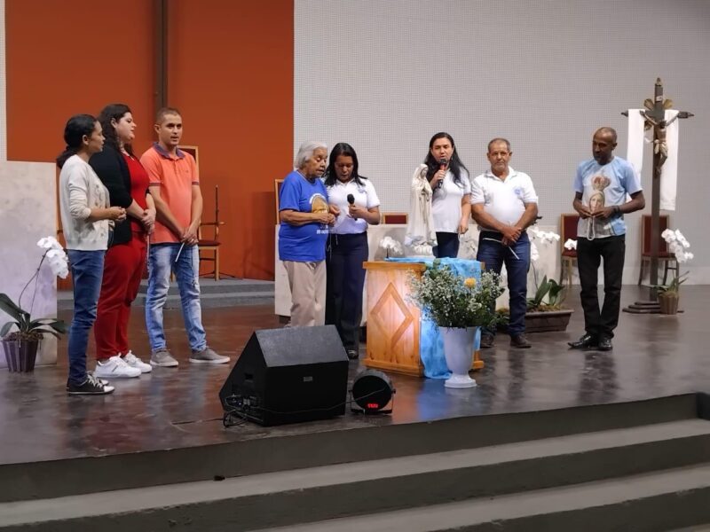 O especial momento mariano, que incluiu oração pela paz do mundo, por todas as famílias, juventudes na Igreja-mãe da nossa Arquidiocese e homenagem à Nossa Senhora de Fátima, foi promovido pela Pastoral Familiar da Rensc. O encontro contou com a presença de dom Júlio César Gomes, bispo auxiliar da Arquidiocese de Belo Horizonte e do vigário episcopal da Rensc, padre Antônio Moacir.