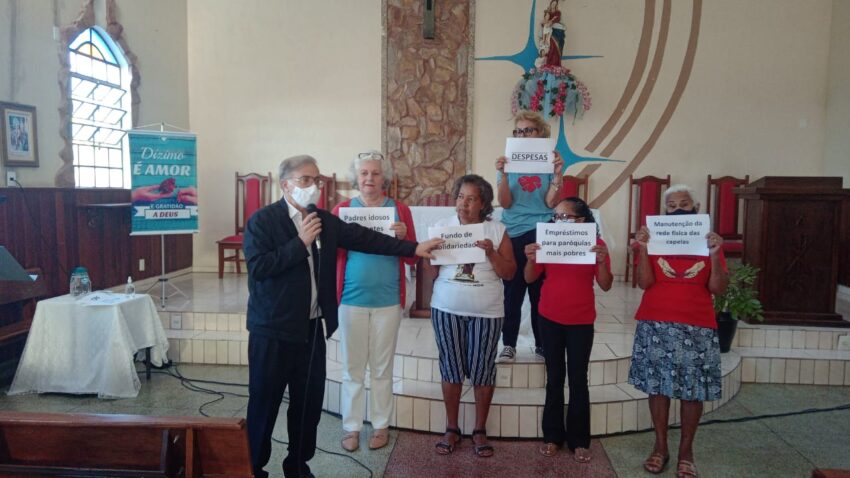 financeiras e as despesas paroquiais, apresentadas pelo Pe. Edecildo.