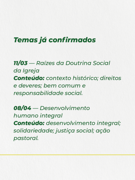 Acompanhe, a seguir, a programação completa do curso e compartilhe esse convite especial com sua comunidade de fé!
