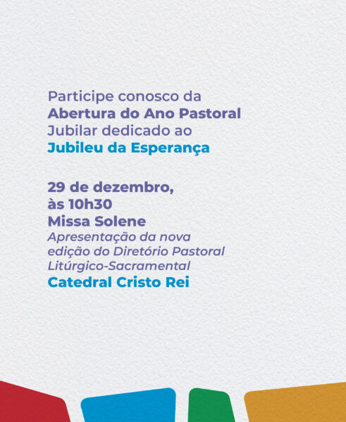 Em 2025, vivenciaremos o Jubileu da Esperança – convite especial do Papa Francisco. A Catedral Cristo Rei – Igreja-Mãe da nossa Arquidiocese acolhe comunidades de fé, fiéis e suas famílias para Missa Solene de Abertura do Ano Pastoral Jubilar dedicado ao “Ano Santo” – Jubileu da Esperança, dia 29 de dezembro, domingo, às 10h30. A Celebração será presidida pelo arcebispo dom Walmor Oliveira de Azevedo.