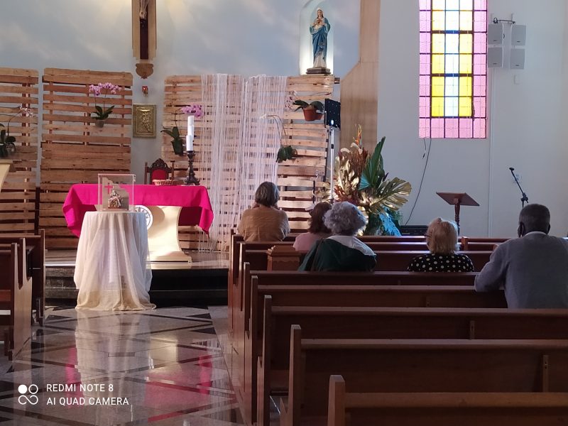 No domingo, dia 04 de julho, a Paróquia Imaculado Coração de Maria recebeu com muita festa e alegria o ícone do Centenário da Arquidiocese de Belo Horizonte, a imagem da Padroeira Nossa Senhora da Piedade. Pe Bráulio Tibúrcio, pároco juntamente com a comunidade paroquial preparou com muito zelo a programação que constou de LIVE Mariana e Celebração Eucarística no domingo, Terço das Famílias, Visitação da Imagem e Adoração do Santíssimo. Na noite da terça-feira, dia 06 de julho a comunidade despediu do ícone entregando para Paróquia São Lucas, para continuar a peregrinação pela Forania Nossa Senhora da Paz.