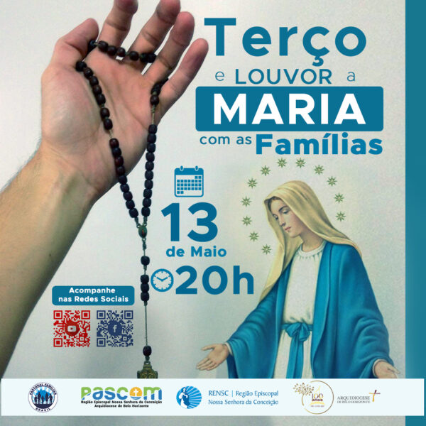 na próxima sexta-feira, dia 13 de maio, às 20h – Terço e louvor a Maria com as famílias.